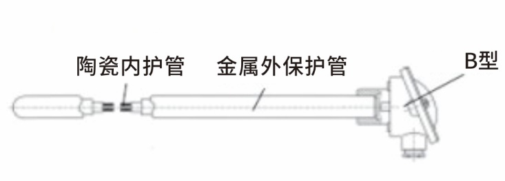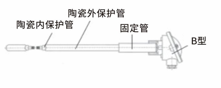 带金属固定管、陶瓷热电偶套管、陶瓷内管和B型连接头的热电偶