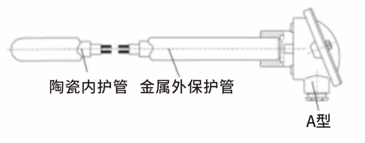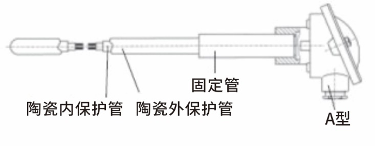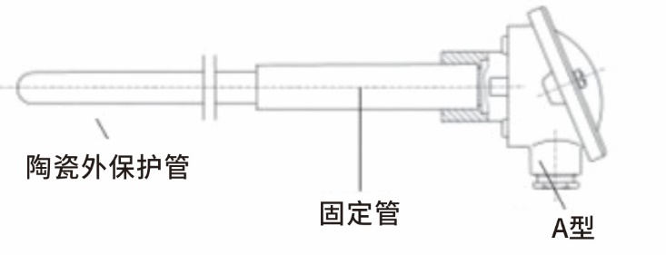 带金属固定管、陶瓷热电偶套管、陶瓷内管和 A型连接头的热电偶