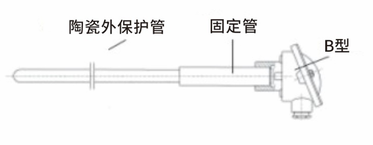 带金属固定管、陶瓷热电偶套管和B型连接头的热电偶